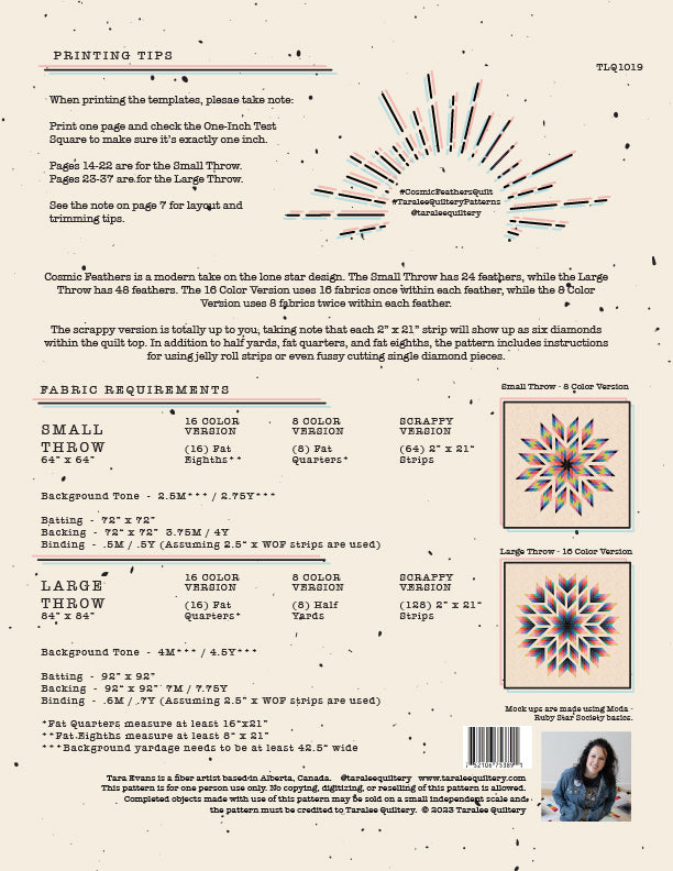 This pattern is for one person use only. No copying, digitizing, or reselling of this pattern is allowed. Completed projects made with use of this pattern may be sold on a small independent scale and the pattern must be credited to Taralee Quiltery. ©2023 Taralee Quiltery