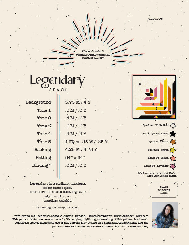 This pattern is for one person use only. No copying, digitizing, or reselling of this pattern is allowed. Completed objects made with use of this pattern may be sold on a small independent scale and the pattern must be credited to Taralee Quiltery. © Taralee Quiltery 2019