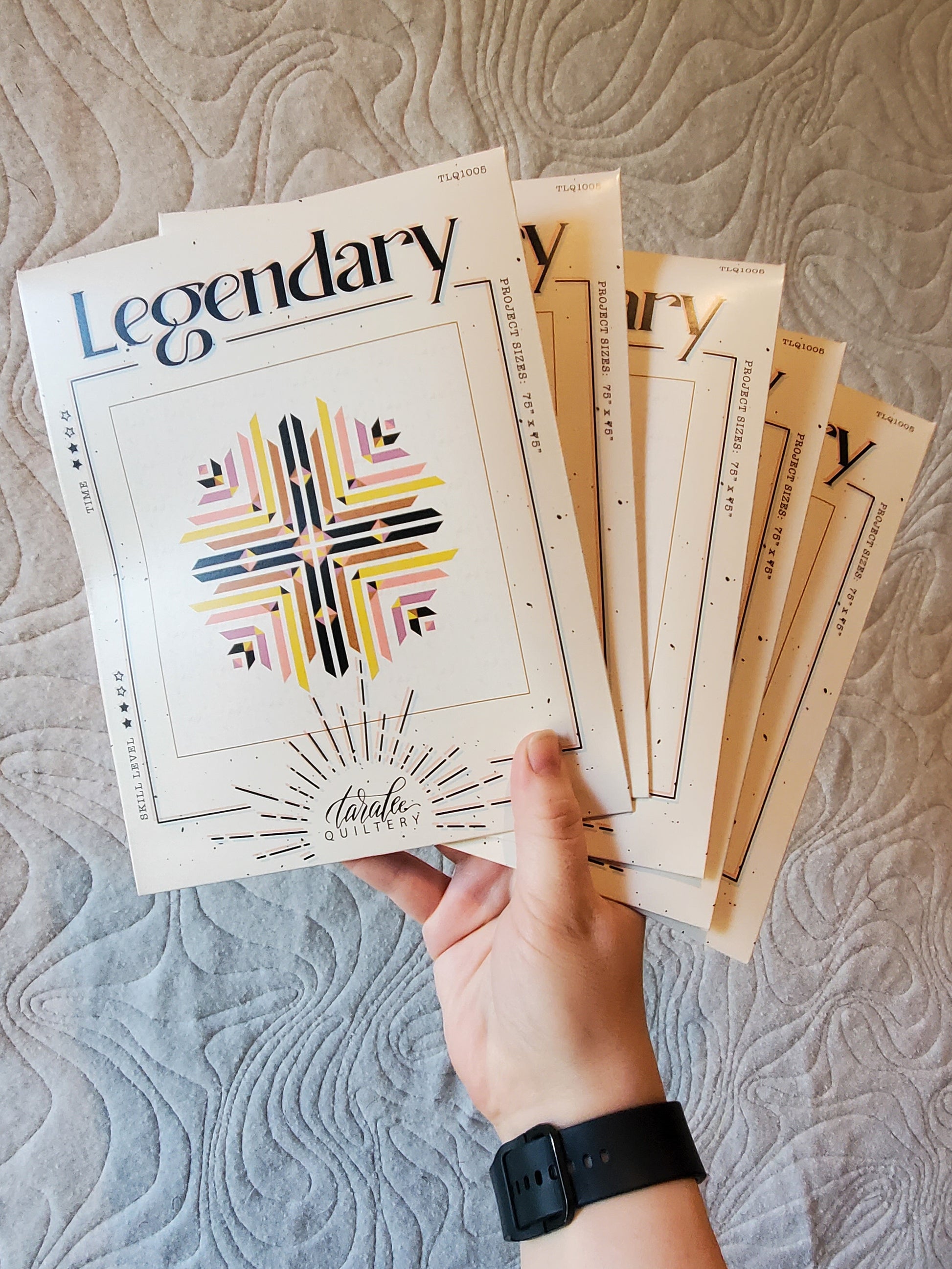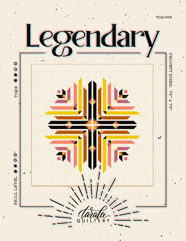 Legendary is a striking, modern, block-based quilt. The four blocks are built log-cabin style and come together quickly. Finished quilt measures 75” x 75”. Coloring page and detailed cutting instructions included. This pattern is considered an intermediate level. Please see second image for fabric requirements.