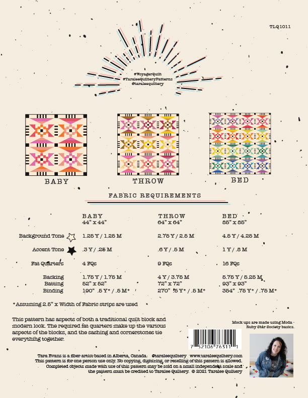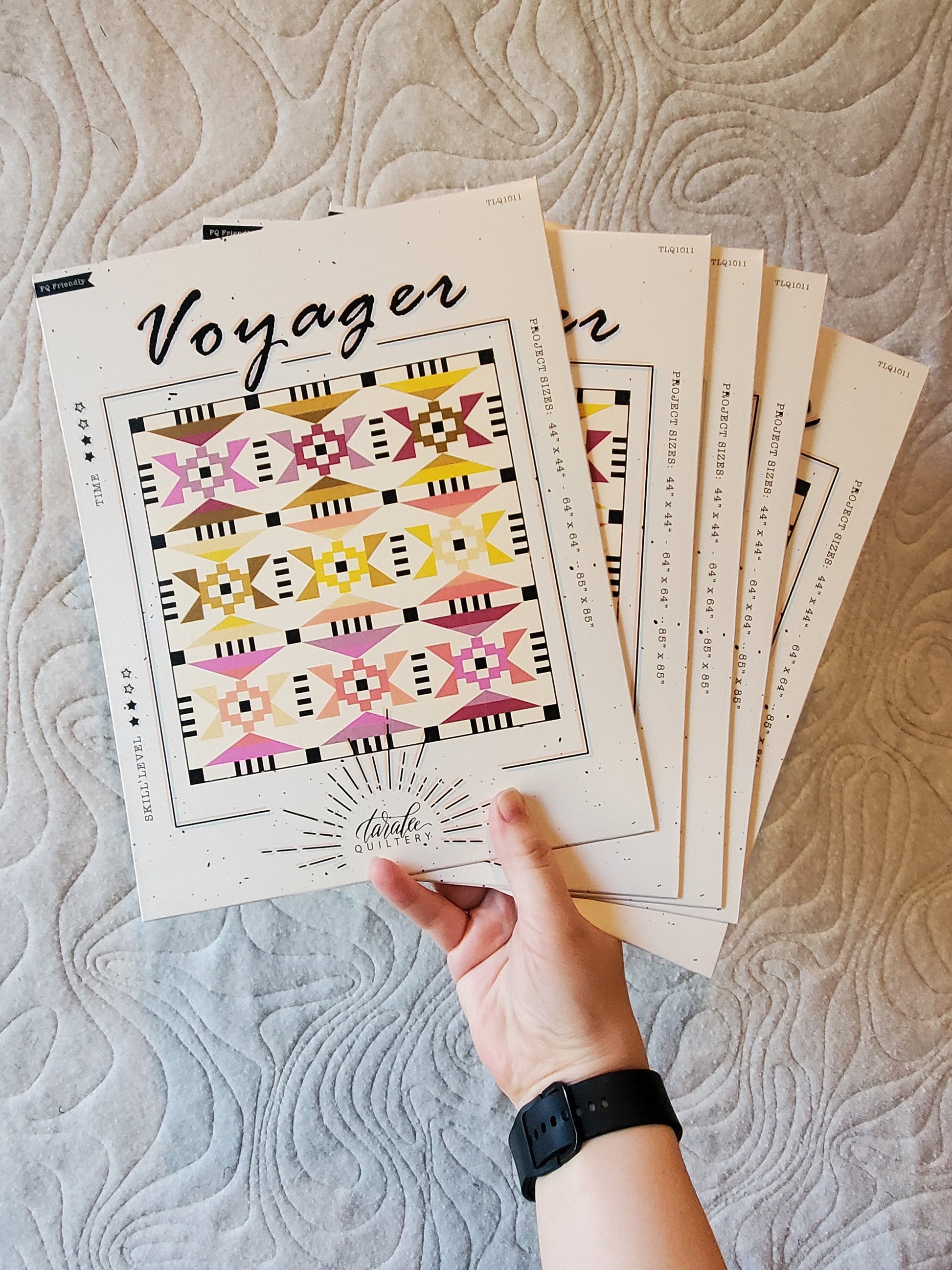 Voyager is a fat quarter pattern that is a nod to the voyagers in our families. Whether it be about the ancestors of your past or the present family members that pave the way to new life, this pattern has aspects of both a traditional quilt block and modern look. The required fat quarters make up the various aspects of the blocks, and the sashing and cornerstones tie everything together. For more inspiration follow #voyagerquilt on Instagram.