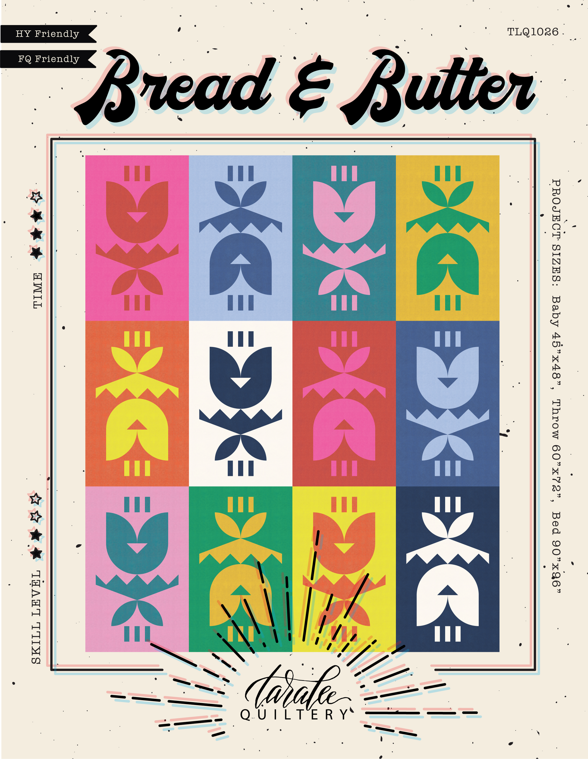 Bread & Butter is a great way to use a Half Yard bundle or Fat Quarter bundle. Two versions are within the pattern; Half Yard Version and Fat Quarter Version. Pieces are cut using templates within the pattern and then tradtionally pieced.