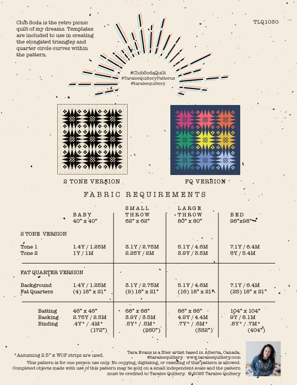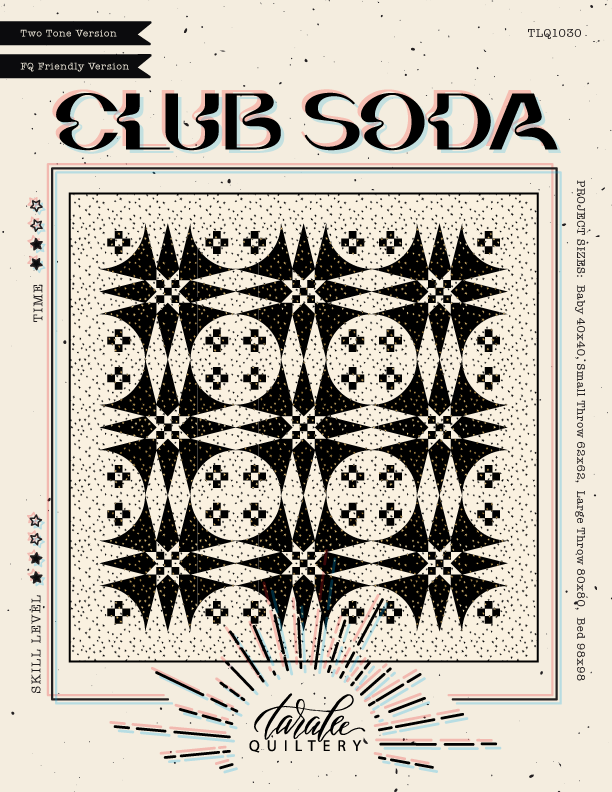 Club Soda is the retro picnic quilt of my dreams. Templates are included to use in creating the elongated triangles and quarter circle curves within the pattern.