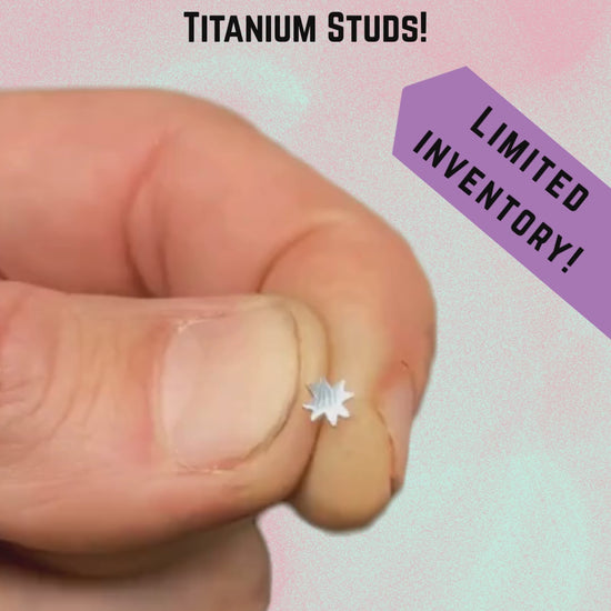 The earring is all implant-grade titanium, with an 18 gauge 6mm flat back post. Makes for a great lower lobe, upper lobe, or nose piercing.